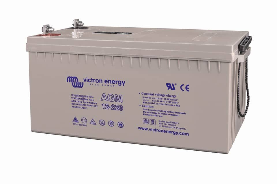 La batería AGM Deep Cycle 12V/220Ah con terminal M8 de Victron está diseñada para aplicaciones que requieren grandes capacidades de almacenamiento energético. Es ideal para grandes instalaciones solares fuera de red, sistemas de respaldo industrial y vehículos recreativos de largo alcance. La tecnología AGM asegura una alta resistencia a los ciclos de carga y descarga, mientras que los terminales M8 ofrecen conexiones estables y duraderas.