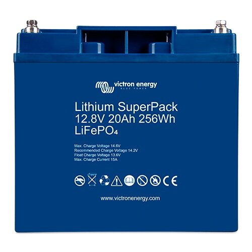 La batería Victron Lithium SuperPack de 12,8V/20Ah está diseñada para aplicaciones que requieren energía confiable y de alta eficiencia. Incorpora un BMS (Sistema de Gestión de Baterías) integrado, proporcionando protección automática contra sobredescarga, sobrecarga y cortocircuito. Ideal para sistemas solares, vehículos eléctricos y embarcaciones, su formato compacto permite una fácil instalación.