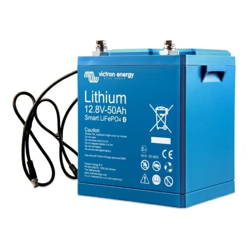 • Una batería Batería LiFePO4 12,8V/50Ah – Smart ofrece una eficiencia de ciclo completo del 92%.
