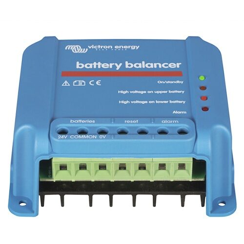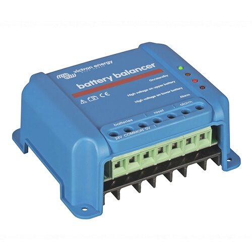 El Battery Balancer está diseñado para mantener equilibrado el estado de carga en sistemas formados por dos baterías de 12 V conectadas en serie o en varias cadenas paralelas de baterías en serie. Su función ayuda a proteger la vida útil del banco de baterías y a mejorar su rendimiento general.