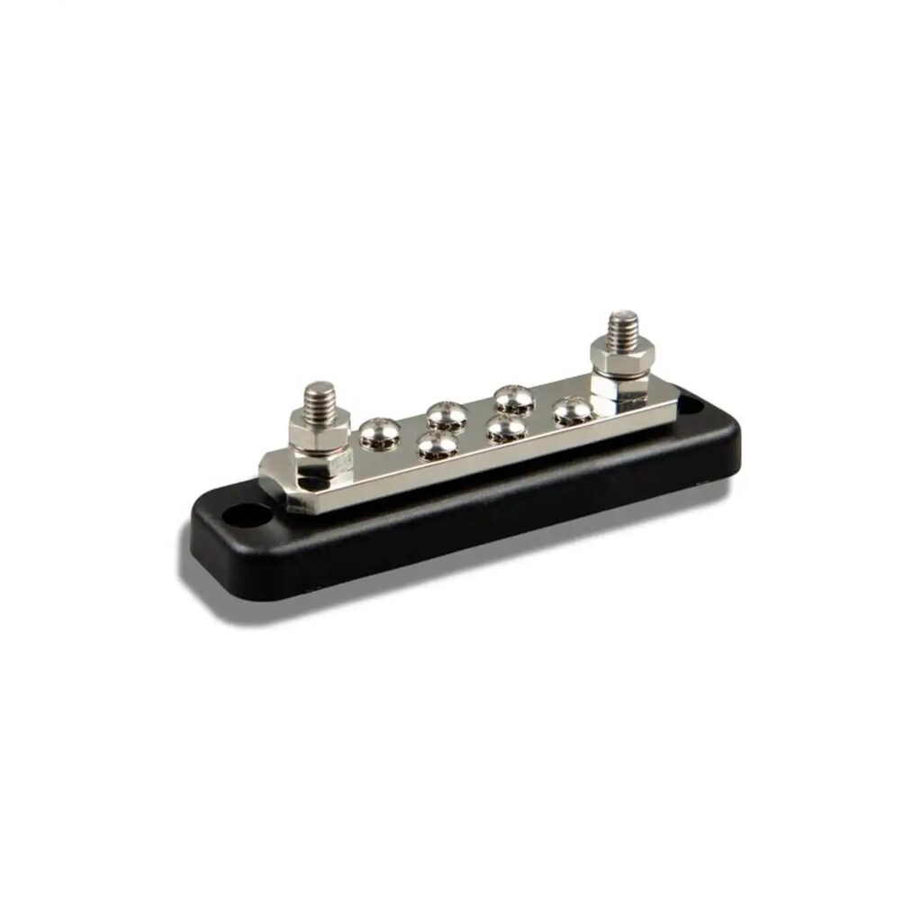 El Busbar 250A 2P con 6 Tornillos + Cubierta de Victron está diseñado para distribuir corrientes de hasta 250 amperios en sistemas eléctricos avanzados. Con dos polos y 6 tornillos de fijación, este busbar garantiza una conexión sólida y fiable para múltiples dispositivos Victron.