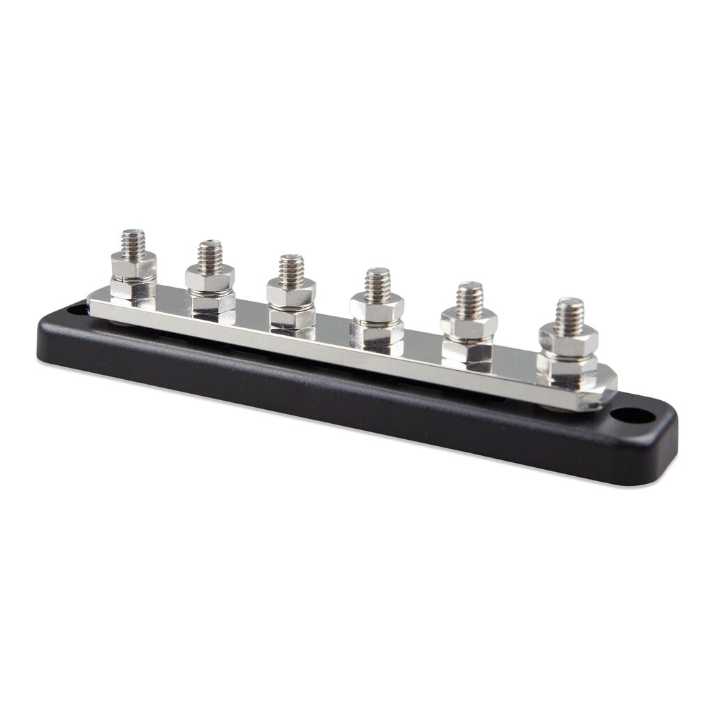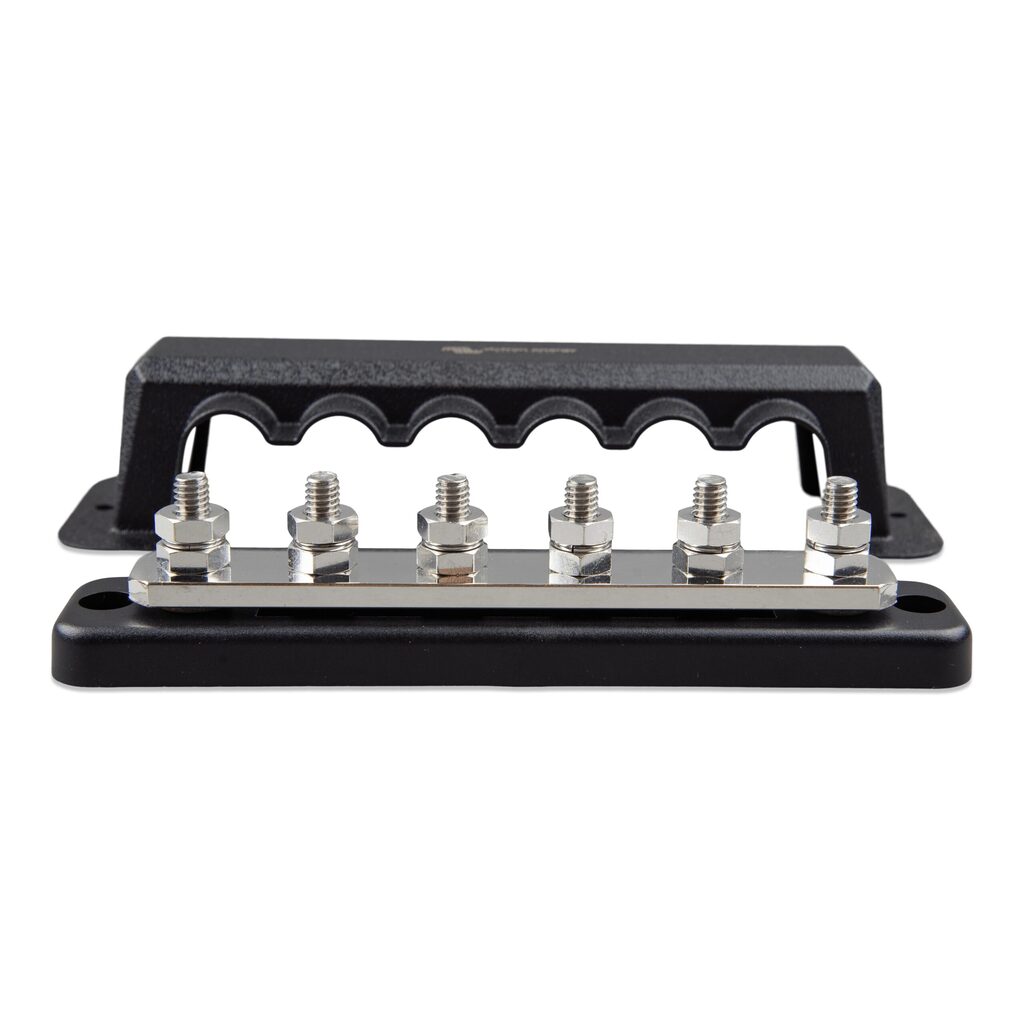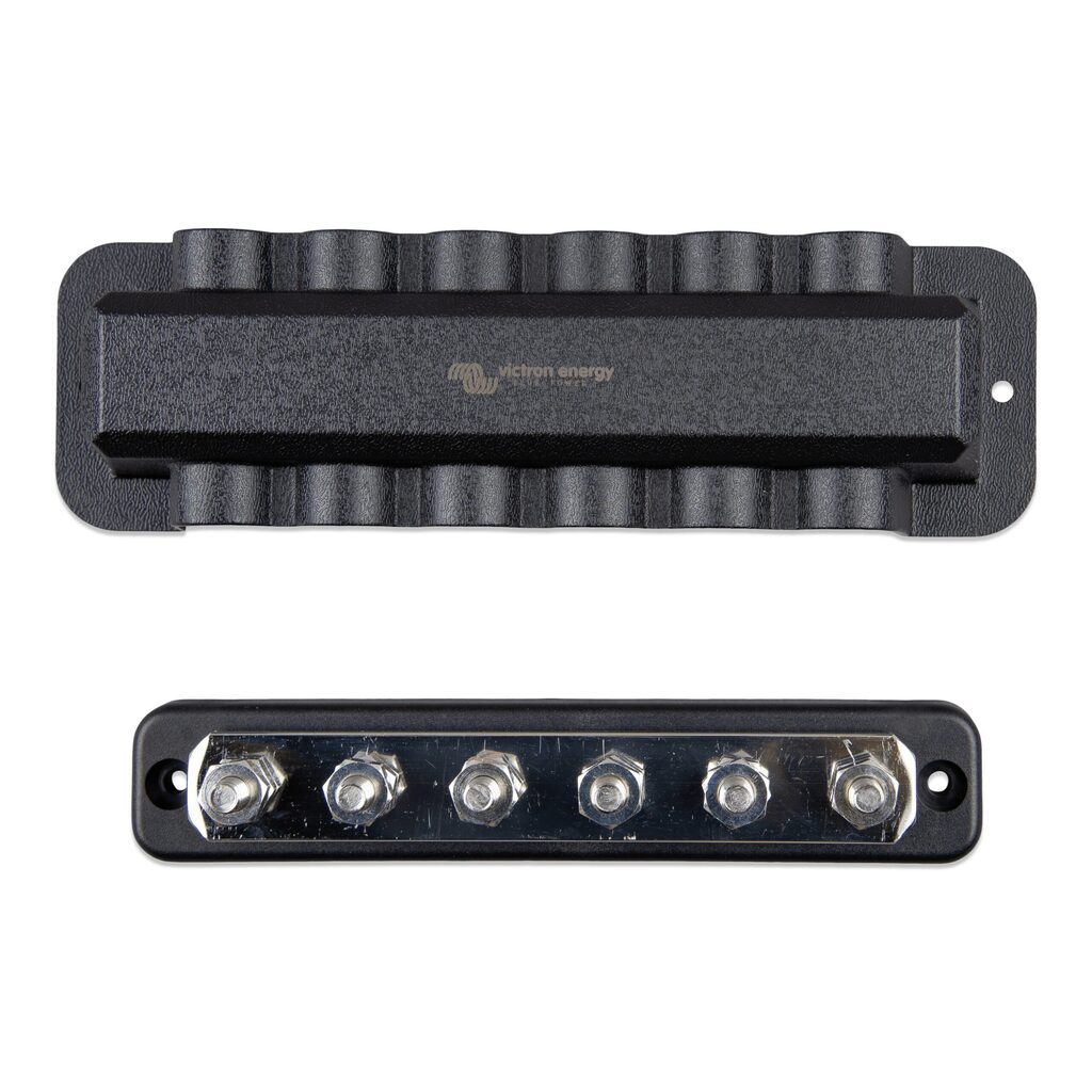 Optimiza la distribución de energía en tu sistema con el Busbar 250A 6P + Cubierta de Victron, asegurando una gestión energética eficiente y segura, además de una instalación duradera y fácil de mantener.