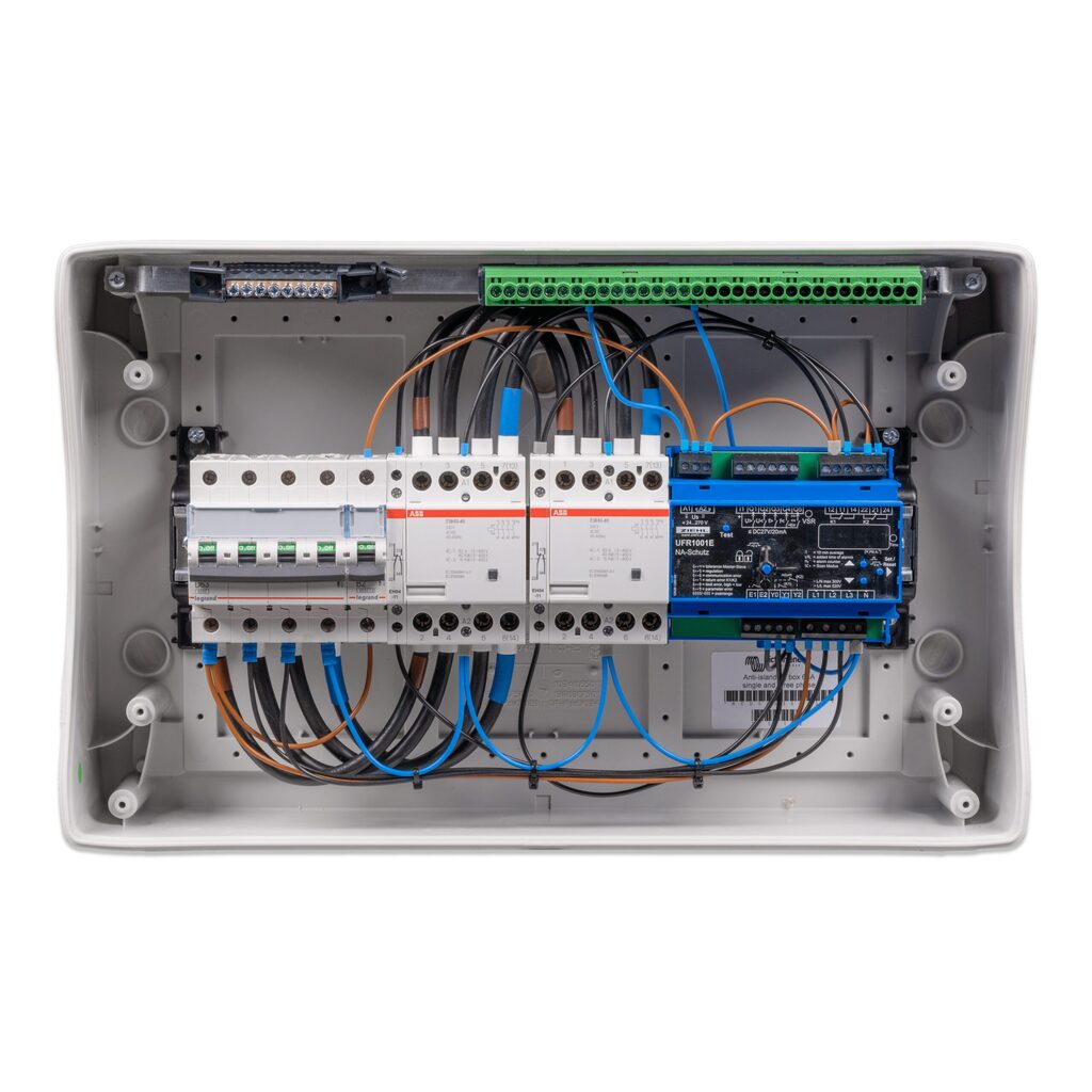 Según la información oficial del fabricante, la unidad incorpora un dispositivo antiisla Ziehl UFR1001E, dos contactores integrados y un disyuntor principal, todo ello montado dentro de una misma envolvente. Además, ofrece una intensidad nominal de hasta 63 A por fase y cuenta con una carcasa con grado de protección IP65, una característica especialmente interesante cuando se necesita una solución protegida frente al polvo y al agua en condiciones exigentes.