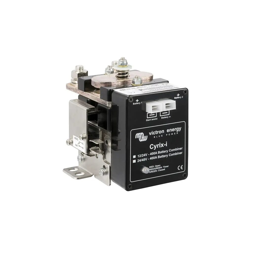 Los combinadores de baterías Combinador de baterías inteligente Cyrix-i 12/24V-400A son una excelente alternativa a los puentes de diodo. La principal ventaja es que no hay prácticamente pérdida de tensión, por lo que no es necesario aumentar la tensión de salida de los alternadores o cargadores de batería.