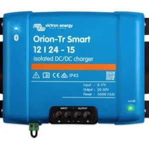 El Victron Convertidor Victron Orion IP67 24/12-5A (60W) es un convertidor DC-DC IP67 estanco y robusto para exterior, ideal en náutica, vehículos y entornos con polvo, humedad o vibración. Proporciona 12V regulados desde una entrada de 24V.