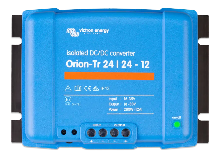 El Victron Convertidor Victron Orion-Tr 24/24-12A (280 W) aislado es un convertidor DC-DC aislado para mantener 24V regulados con aislamiento galvánico, ideal para electrónica sensible y sistemas profesionales.