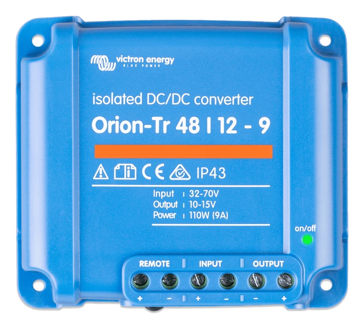 El Victron Convertidor Victron Orion-Tr 48/12-9A (110W) DC – DC aislado es un convertidor DC-DC aislado para obtener 12V regulados desde un sistema 48V. Recomendado para aplicaciones profesionales donde se necesita una salida 12V estable.