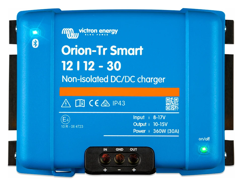 El Victron Convertidor Victron Orion-Tr Smart 12/12-30A no aislado DC-DC es un cargador DC-DC no aislado para cargar una batería auxiliar 12V desde alternador o batería de arranque. Ideal para camperizaciones donde se busca carga estable, controlada y compatible con baterías modernas.