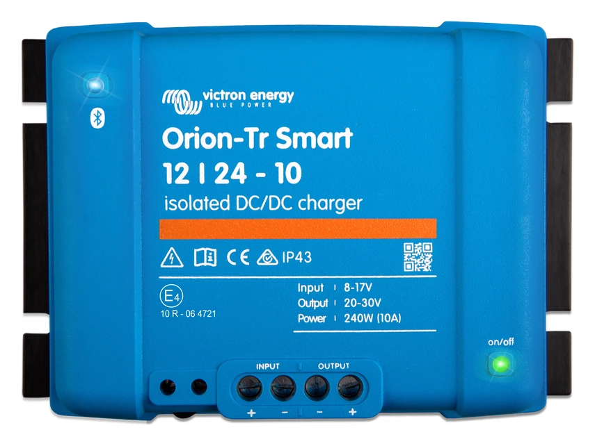 El Victron Convertidor Victron Orion-Tr Smart 12/24-10A (240W) DC-DC aislado es un cargador DC-DC 12V a 24V para cargar baterías auxiliares de 24V de forma estable en aplicaciones móviles. Solución muy demandada para conversiones a 24V en camper, náutica y vehículos industriales.
