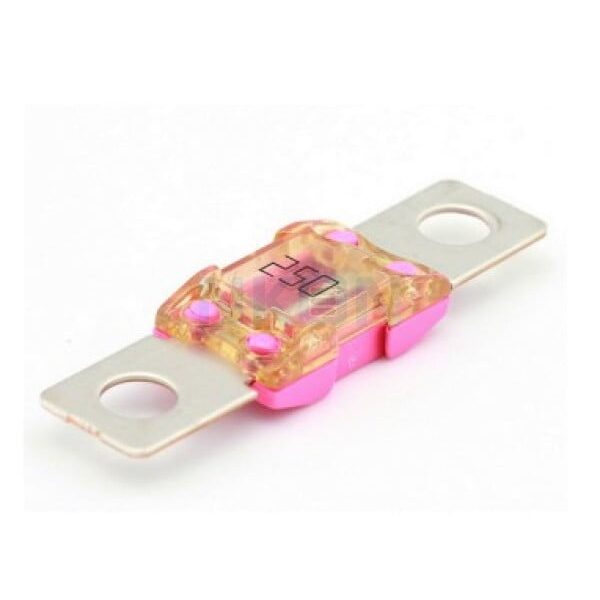 El Megafusible 250A/58V for 48V está diseñado para proteger sistemas de 48V que requieren una alta capacidad de corriente, hasta 250 amperios. Es ideal para aplicaciones industriales y sistemas solares avanzados, asegurando una protección eficaz frente a sobrecargas.