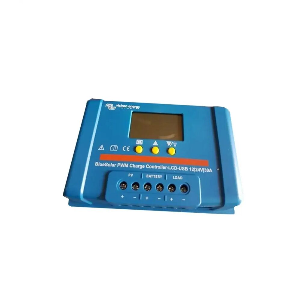 El Regulador BlueSolar PWM-LCD&USB 12/24V-30A ofrece una capacidad de hasta 30A, siendo adecuado para grandes instalaciones solares. Su pantalla LCD permite un control fácil del estado del sistema, mientras que los puertos USB ofrecen versatilidad adicional para cargar dispositivos electrónicos directamente desde la energía solar.